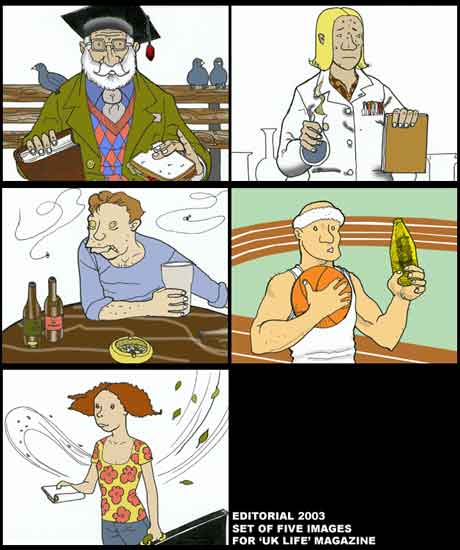 of packages such as Competitions and commissions Sept & Dec issue 2003- Comic strip (one page for ‘UK Life’ magazine(The Independent). Sept 2003- Editorial (series of five illustrations) for ‘Which Way’-UCAS-magazine(The Independent). 2000- Poster