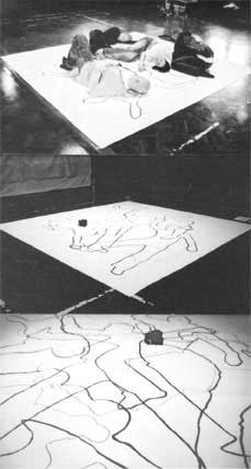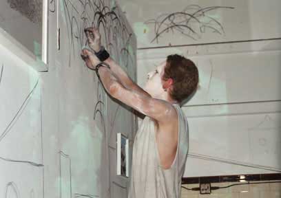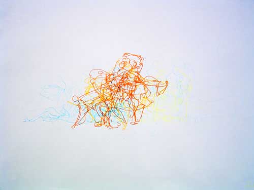 Artist Statement: 'I work mainly with drawing as process and also as a graphical visual medium. Photography, performance, video and new media also extend the parameters of the work. I use drawing to explore movement of bodies in space and to engage the audience within performances. Some works have involved drawing with robots, drawing around people onto a large surface, drawing video footage of people moving a space (on the streets, indoors, within galleries) and capturing those movements using drawing as a process. I have also used drawing as documentation for dance performances and workshops. I am currently studying a Masters in Graphic Communication and I am also a co-organiser of Trailerpark (www.trailerparkuk.com).'
