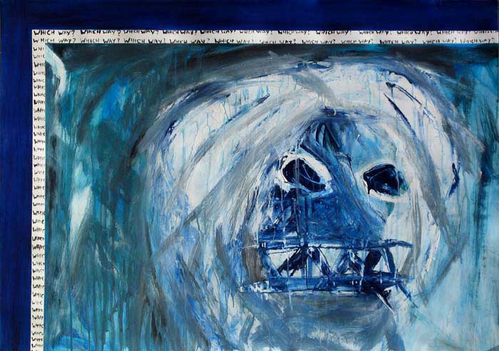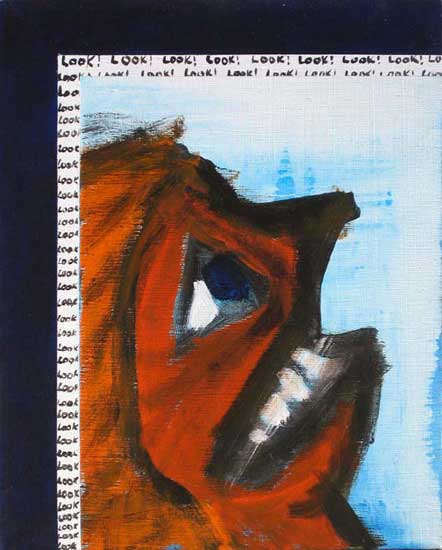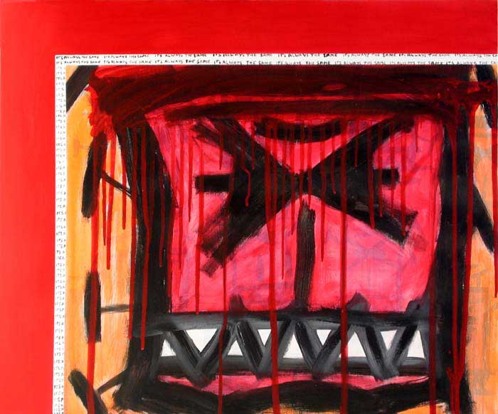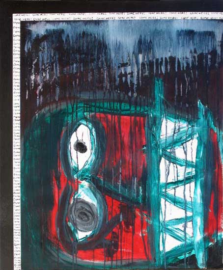 I work both in London and the ancient city of Plovdiv, Bulgaria. I find the space between the more frenetic post-modern atmosphere of London and the romantic traditional approach in Bulgaria allows me a more balanced approach to my studio work. These paintings are made in two sittings; the first sitting involves an expressionistic approach to first create the image. At this point I work quickly to reduce the chance of deliberate conceptual elements being introduced to the paintings. The second sitting involves a period of hours or days, when I encourage a fully conscious interpretation of the image to form. When I discover what this image means, only then do I apply the text. Exhibitions: 2004 April, Balabanov House, Plovdiv, Bulgaria, “Not