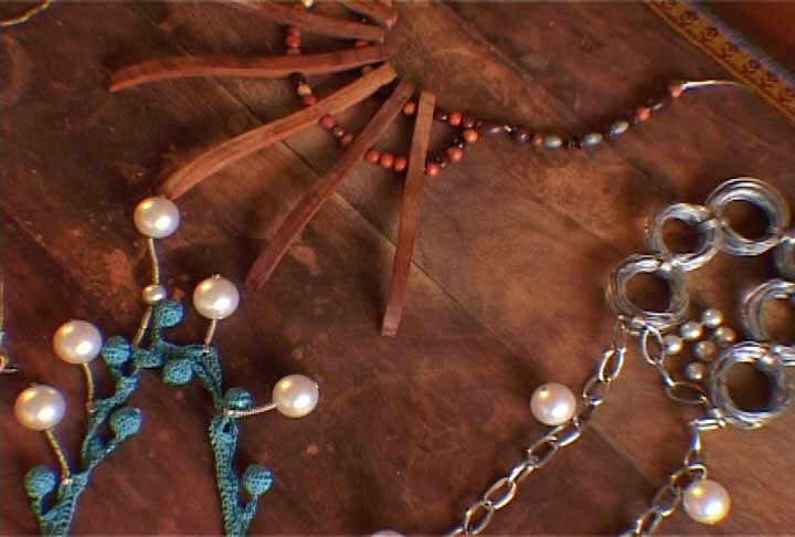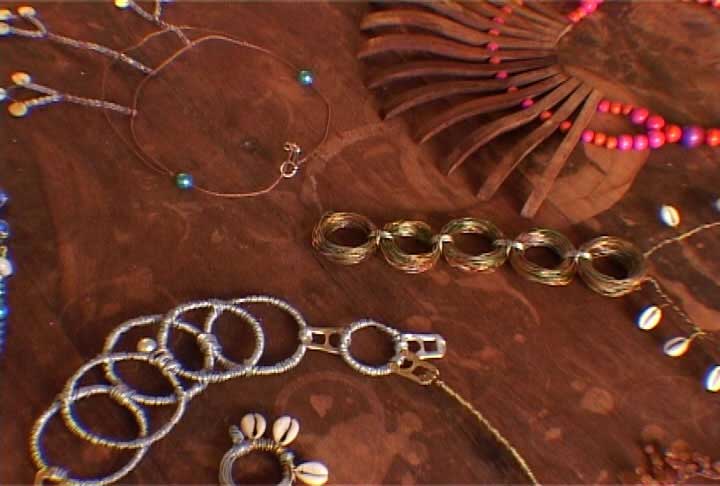 wire; I also use semi-precious stones, plastic,wooden and glass beads,