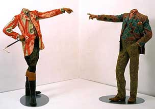 Shonibare's paintings combine emulsion, acrylic, found objects and textiles and explore his interest in aesthetic and post-colonial issues. The textiles used in the works first became popular in West Africa after independence for being constructed as an "African" cloth. The fabric is, in fact, Indonesian-influenced, manufactured in Holland and purchased by Shonibare at Brixton market in London. The combination of emulsion, acrylic paint and ornate fabric creates a sensuous, exciting visual experience. In Play With Me, every painting is round. Here Shonibare plays on the knowledge that roundness can imply physical geometric perfection or internal perfection. While earlier Shonibare paintings were based on a parody of the minimalist/modernist grid, the new paintings literally disrupt the idea of a tight formal structure in favour of a baroque sensibility. In these works, Shonibare explores his personal fondness for tactile enjoyment and play and he handles his interest in the post-colonial condition with a poetic lightness of touch. In Play With Me, Shonibare will include a new series of Toy Paintings, in which multiple plastic toys form a frame around the edges of delicious round paintings. Here, it is the formal excitement of the surreal coalition of colour, manufactured material and improvised organic forms that are celebrated. Shonibare has exhibited widely all over the world. Recent solo exhibitions include Double Dress, Israel Museum, Jerusalem, Israel which toured to to KIASMA, Helsinki, Finland and Padiglione d’arte contemporanea, Milan, Italy in 2003; Studio Museum, Harlem, USA, Be-muse, The British School in Rome, Rome, Italy; The Andy Warhol Museum, Pittsburgh, USA; Camouflage, Johannesburg, South Africa in 2002. Shonibare has also participated in numerous group exhibitions, most notably, Black President: The Art and Legacy of Fela Anikulapo-Kuti, New Museum, New York, USA in 2003; The African Exile Museum, Migros Museum, Zürich, Switzerland in 2003, Documenta 11, Kassel, Germany; Spoleto Festival, Charleston, USA in 2002 and Authentic/Ex-centric: Conceptualism in Contemporary African Art, 49th Venice Biennale, Fondazione Levi, Venice, Italy in 2001. This month, Shonibare will present a newly commissioned work for Looking Both Ways at the Museum of African Art, New York. In February 2004, a new mid-career exhibition of Shonibare's work will open at Beuijmans van Beuningen Museum, Rotterdam, which will travel to Kunsthalle Vienna. Also in February 2004, Shonibare will unveil a recently commissioned work for Moderna Museet, Stockholm. Forthcoming exhibition: Catherine Opie, 23 January – 21 February 2004 Stephen Friedman Gallery will be participating in Art Basel Miami Beach from 4–7 December 2003, Hall A, Stand C10. Gallery