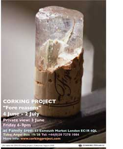 CORKING PROJECT Fore reasons Season1 ( 4 June – 11 June) At “Family tree” 53 Exmouth Market, London, EC1R 4QL |