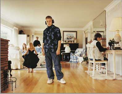 10 July 2004 Press preview Thursday 27 May 5.30 – 6.30pm Private view 6.30 – 9pm Masquerade is an exhibition of five women photographers selected by Photofusion in collaboration with IRIS – International Centre for Women in Photography, whose recently published book of the same title explores the genre boundaries that define portraiture, investigating ways in which women negotiate the traditions, conventions and theories accrued around the medium of photography. Each photographer consciously uses and subverts the codes and traditions surrounding photographic portraiture whilst also considering contemporary womens’ practice under the established genres photography has inherited from painting. Beth Yarnelle Edwards’ domestic interiors Suburban Dreams offer a fascinating insight into middle-class California's suburbs. In the dramatically staged photographic tableaux, Yarnelle Edwards examines the relationship between real people, their possessions and the spaces they inhabit. Similarly, Magali Nougarede's series, Toeing the Line, is an attempt to speak of middle class values in relation to the lives of women found on repeated walks along the seaside at Eastbourne highlighting the intensity in which many women interact with their environment. Sarah Pucill's black and white self-portraits self-consciously play with the frame and its boundaries exposing that which is and that which is not in the frame. A complex and tangled gaze travels between viewer; the women photographed and the mutual gaze of the women in the frame. Symbolism is dominant throughout Pucill's work with the duplication of the body and its inherently female shape. In contrast, Catriona Grant's series, Role Models, of young males takes an intimate viewpoint showing an aloofness and vulnerability contradicting the usual aggressiveness associated with male teenagers. Get Me Some Pills by Kathe Kowalski is a heart rending, unflinchingly honest dilemma of her mother’s battle with Altzeimers. Photographed in her home, in various states of undress, the photographs are stripped of sentiment as Kowalski is faced with the painful realities of her mother’s illness. The accompanying