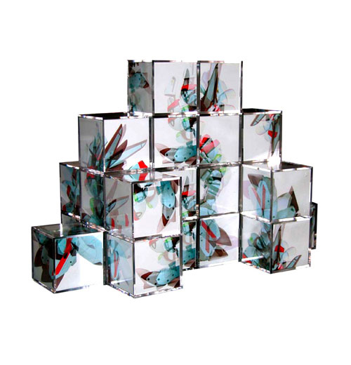 Artist Statement In an attempt to overcome the psychic wounds created by growing up in the spiritually sterile conditions of late 20 th Century, I make art. Technological and scientific achievements eclipse spiritual understanding. However, I want to connect them. Modern science has made a large segment of industrialized society skeptical of spiritual thought. Consequently, spirituality is evaporating, along with the fundamental psychological fulfillment found in spiritual beliefs. The repercussions of this are evident in the first important myth of our time - visions of UFO’s (Carl Jung theorized in his book “Flying Saucers: A Modern Myth”) as technological angels from the heavens and the hybrid forms of man and machine found in science fiction. My work is deliberately conscious of this condition. In my collages, digital assemblages and 3-D constructions I synthesize images and objects selected for their hybrid forms. These forms are then mutated and remixed into “super hybrid” constructions. The focus of my work revolves around the central themes of evolutionary change and spiritual understanding. My aim is to draw a connection between environmental changes and the technology transforming how we live with the spiritual forces animating the natural world. The visual microcosms I invent merge traditional spiritual forms with emerging pop culture icons to release the mythological potential inherent in these cultural icons. Art, philosophy and literature culled from ancient and modern Asian and 19 th - 20 th Century Western culture have been a major influence on my work. Sources such as Mary Shelley’s “Frankenstien”, Eadweard Muybridge’s motion study photographs, Futurism, Taoism, Buddhism, T’ang Dynasty scroll painting have all informed my treatment of this subject matter. These influences with central themes of the fundamental conflicts that exist between science and religion, the force and motion of machinery, the nature of change and the search for a definition of man and his status in the universe are all themes explored in my work. The influence of Marcel Duchamp’s Futurist era “Nude Descending a Staircase” for example, can be seen in my piece “Flex”. It harkens the Futurists’ depiction of motion and speed, the Cubists’ fracturing of form and Muybridge’s motion study photographs. The format of “Flex” allows for it to be played with by the viewer. The familiar object of building blocks is repurposed to include images of the dynamic movements of an anthropomorphous sci-fi toy transforming from a machine to human-like robot. It connects the previously invisible spiritual dimension of nature’s creativity, found symbolically in children’s building blocks, to the popular, unconscious, and personal domain of the viewer. Science Fiction films such as “Akira”, “Ghost in the Shell”, “Blade Runner” and the popular sci-fi cartoon “Transformers” have also informed my aesthetic and influenced me conceptually. Many of the hybrid images in my work originate in sci-fi. My educational objective is directly linked to my personal evolution as a human being. I consider creating art to be part of my spiritual practice and am constantly in pursuit of perfecting it. Thus, education for me is a life-long commitment. For sales, commissions and to send comments to the artist.