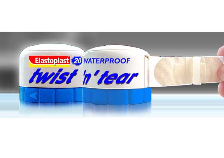pack dispenses plasters from a reel in a user friendly way enabling the