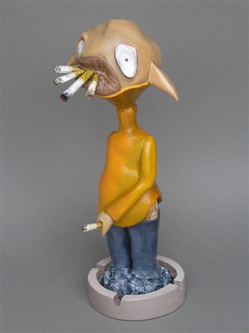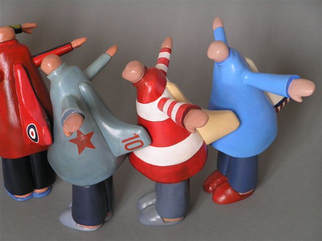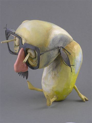 I studied at Edinburgh College of Art in Jewellery and Silversmithing, graduating in 2000 with a First Class Hons Degree and a Postgraduate Diploma. Capturing the essence of a subject, my pieces are in the main a combination of jewellery and figurative sculpture. I work in mixed media using a variety of materials; usually combining mould making, carved wood, resin, silversmithing and enamel. This melding of jewellery and sculpture – a device that is now my trademark -results in mainly 3-d figurative sculpture that is often abstract, surreal and even cartoon - like. Parts of the sculpture perform two tasks, firstly to form as a feature of the character, e.g. a handbag, and secondly to perform individually away from the sculpture as stand-alone jewellery pieces, e.g. a brooch. Initially appearing cartoon or dreamlike, the pieces also possess a rawness that is reflected in everyday life. These dark but loveable characters each have their own narrative that provides escapism, taking us on a journey into another world. The removable jewellery piece extends this narrative from the sculpture and through wearing the owner of the piece is drawn deeper into the character’s world. Sometimes poetry and words give the character an additional voice, or automata will give a simple movement that also adds to the reality of the concept. My inspiration comes from everyday life, in observations of people and their environment, seeing depth below the superficial. Drawings of parts and pieces of broken down machinery are always my starting point. The vitality of the characters and 3-dimensional objects develop from these loose painterly sketches. My pieces range from simple items of jewellery, to painting and prints, highly collectable limited edition figures (with or without jewellery components) to large one–off pieces. I also have a small T shirt Label called Solly. All enquiries are welcome. |
