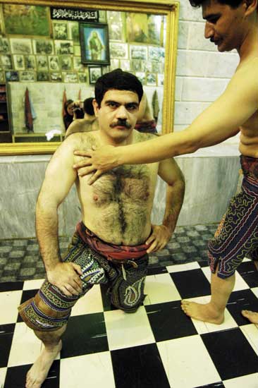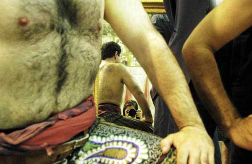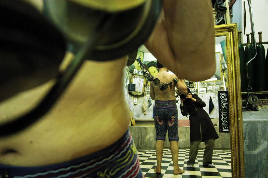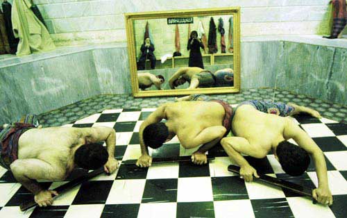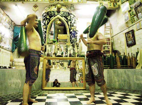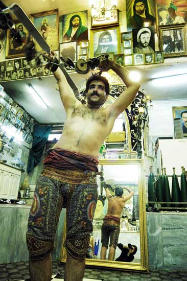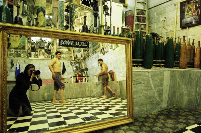 Artist Statement: The breath of women is religiously prohobited in the Zourkhaneh. Zourkhaneh, a traditional centre of male sport where religion ,tradition,virility and symbol of the persian hero are all mixed. The first day I entered the zourkhaneh with mirrors reflecting the sence all over,I suddenly found myself standing in front of some big and strong men .It was so hard to gain the trust of these extremly religious moslems and their agreement to pose half naked in front of me and the mirror, but magic of photography helped me ,I made sure to be peresent in each photos as a subject among the heroes. For sales, commissions and to send comments to the artist.