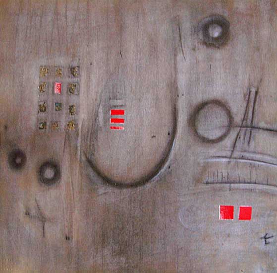 Artist Statement My work is now abstract. I use a dialogue of shape and colour to create ideas about the landscape and inherent memory. Using acrylic mediums as a base, I incorporate found media, such as wool from the fences, rust, earth etc to create texture and a sense of place. Memory and music plays an important part in moving the process into an intuitive area, where striving ends, and the work naturally flows. The work has been in solo exhibitions throughout Wales and England, and in selected shows in the UK, USA, Poland, France , Ireland and Canada. I show regularly in London galleries. Much of the work is now in both private, and public collections, and has been featured in several television documentaries, radio programmes and magazines. Early design work received an award from BAA and the Sunday Times, and since then more prizes have been awarded for landscape painting, drawing, and abstract images. My inspiration comes mainly from my environment, but also from my early years spent living in St Ives. The artists there also have impressed ideas into the work, John Krcma, Bob Devereux, Barbara Hepworth, and Ben Nicholson. A new studio is allowing me to produce bigger, more energetic work, and the intention is to produce is new body of abstract work, exploring my relationship with the landscape. For sales, commissions and to send comments to the artist.