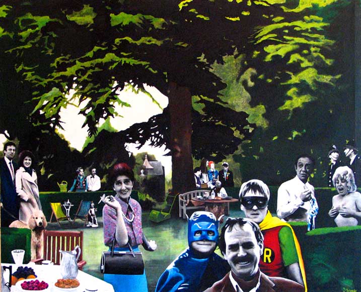 The work itself then took a natural turn and once I had studied my technique for a number of years the content of the painting became important again. The work has evolved and now I create paintings that have more narritive within them. I create my own scenes which have become a way of highlightling a subject that intrigues me; Britishness. British so called sensibilities, traditions, quirkyness, humour, cuisine and so on.